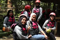 Dan benar saja, meski ada sedikit arus yang harus diterjang, dan beberapa kali tersangkut, kami tetap bisa menikmati liburan kali ini dengan gembira. Sepertinya pun yang membuat kegiatan kali ini lebih menyenangkan adalah saat semua orang mencoba untuk menjatuhkan sesama teman yang lain. hahaha. Saking hebohnya mereka sampai berkali-kali terjatuh, bangkit, dan terjatuh lagi. Sepertinya, 'dendam' saat bekerja bisa dilampiaskan di sini. hahaha (bercanda aja sih). Ada yang menjadi pemburu keras, ada yang sengaja menceburkan diri sendiri biar ga diceburin, ada yang bertubi-tubi jadi incaran orang, tapi tetap ada yang anteng-anteng saja haha.